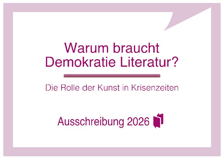 Es ist daher naheliegend, dass sich die Ausschreibung 2026 dieser Themenfelder annimmt. Das folgende Thema wurde formuliert: Warum braucht Demokratie Literatur? Die Rolle der Kunst in Krisenzeiten.