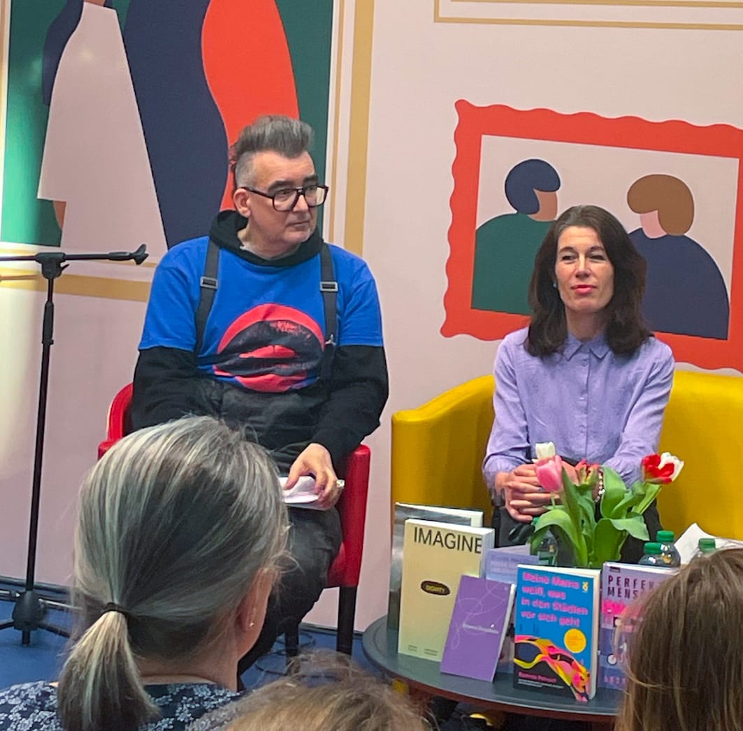 Am 23. März 2024 wurde die Ausschreibung ›Imagine Dignity‹ auf der TRADUKI-Kafana-Bühne auf der Leipziger Buchmesse vorgestellt. Johanna Rohland-Lindner (Österreichisches Kulturforum Berlin) präsentierte im Gespräch mit Manfred Müller den Literatur-Call und andere Initiativen des Außenministeriums. Im Anschluss sprachen Michael Stavarič und Radmila Petrović über ihr gemeinsames Projekt ›Wien 2040: In welcher Welt wollen wir 2040 leben?‹ sowie Andrea Grill über ›Die DNA der Würde‹, das Projekt, das sie gemeinsam mit der albanischen Autorin Albana Shala realisiert.